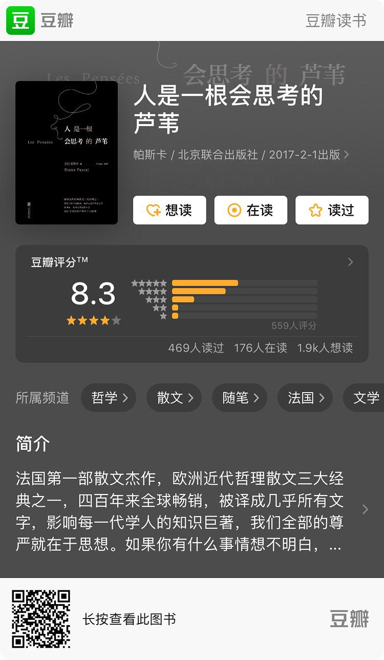 就比如,“你在豆瓣发现的‘奇书’”话题下,这条点赞最高的内容,来自豆瓣网友@麦唛 ,ta带来的是一套以「人究竟是什么?」为主题的书目专辑: