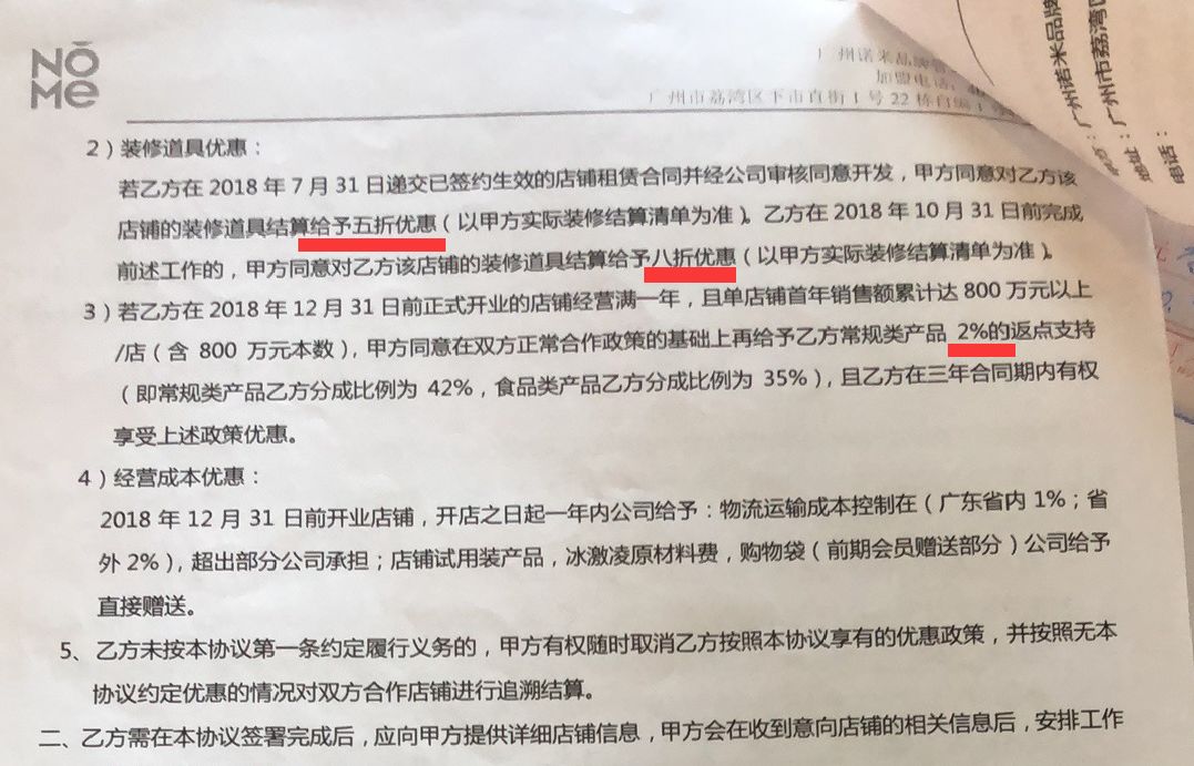 合同的白纸黑字写着的,加之作为加盟商的刘芮的真实情况,记者了解到,NOME一直将尾款拖着未与加盟商结算。
