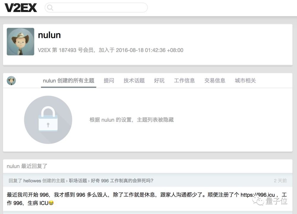 而V2EX用户nulun已经说明,因为最近自己工作的公司996,才意识到996工作制对人伤害巨大,因此注册了这个域名。