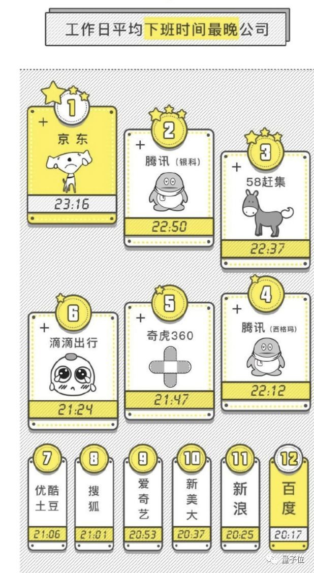 此前滴滴发布的报告显示,腾讯、百度、搜狐、新浪等大公司的员工下班时间同样晚到可怕:
