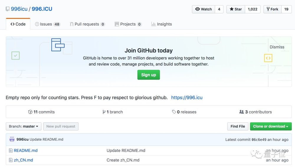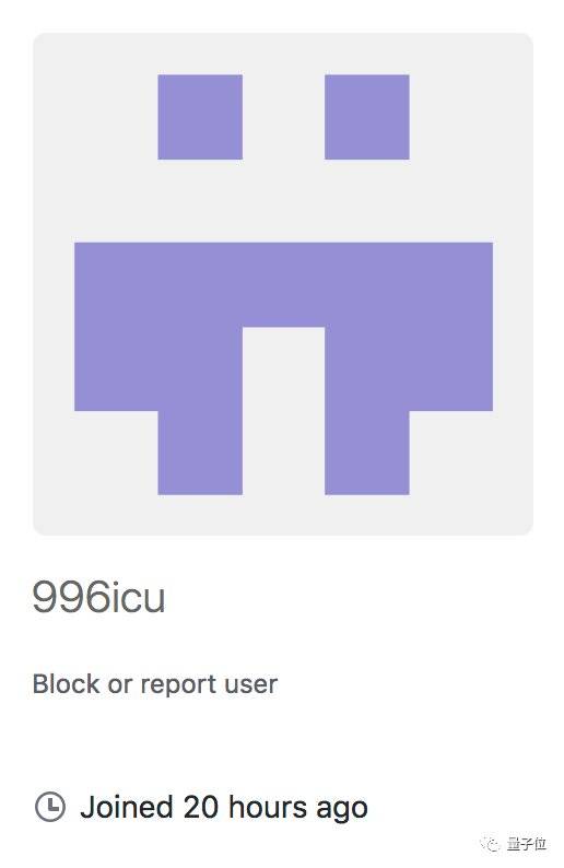 而这个项目的作者,用的是一个昨天刚刚注册的小号,名字就叫996icu。