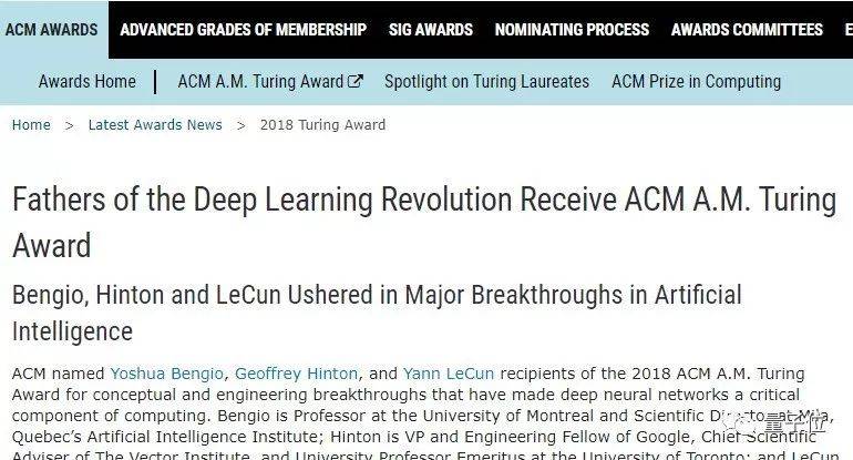 ACM刚刚官宣,Yoshua Bengio、Geoffrey Hinton、Yann LeCun获得了2018年度图灵奖,表彰他们以概念和工程的突破,让深度神经网络成为计算关键部件。