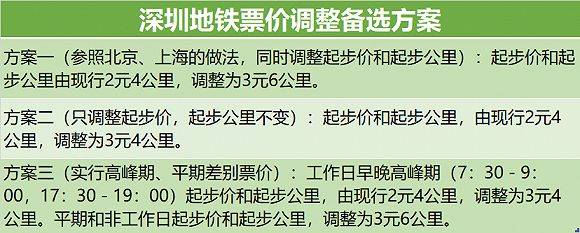 深圳市发改委对即将召开的地铁票价调整听证会提出了三个方案,三个方案均要求将起步价由2元变为3元,区别只在于起步里程数和是否实行高峰期差异票价。