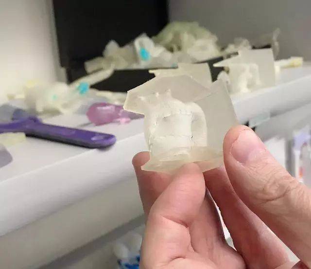 我在希维尔德森的实验室里看到了一个比乒乓球略小的3D打印模型,质感柔韧,中间的裂痕用细密的针脚缝了起来。“这是一个有着先天心脏缺陷婴儿的心脏的一部分。”希维尔德森对我解释道,“我们用当前的造影技术,结合人工智能技术为心脏建模,然后打印出来供进行手术的医生练手。”