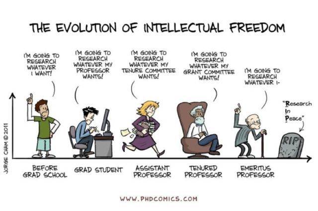 读博士前做过程序员的政治学博士王振是果壳接触的十位博士中唯一一位没有受到抑郁困扰的博士。他清楚地知道,就算毕业后顺利找到理想的教职,他的收入很可能比刚毕业做程序员时要低。他依然选择留下。“有时候我在想这是不是一个筛选机制,故意用低薪来排除掉那些对学术不够热爱的人。我说实话,做学术真的需要很大的精神回报,就是说你得觉得这事儿很有意思。”