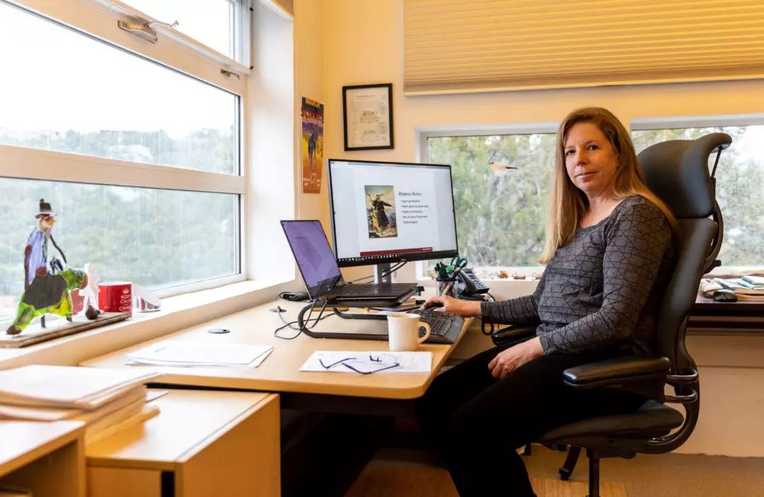 Jennifer Dunne 在圣塔菲研究所的办公室内。她是圣塔菲研究所科学副主席。