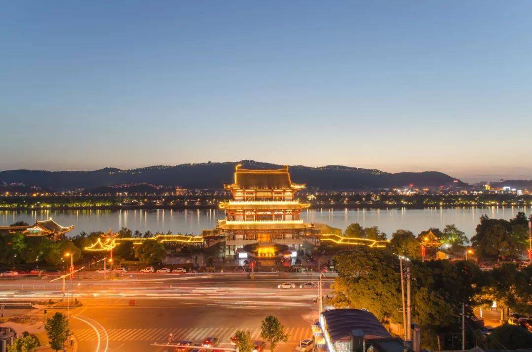 为纪念杜甫而建的长沙杜甫江阁。(全景)