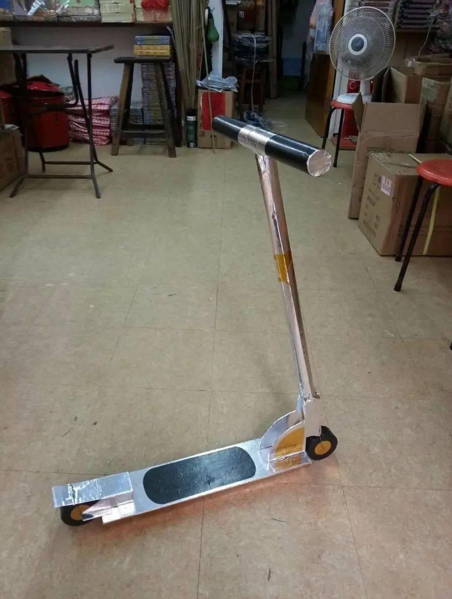 纸扎的“滑板车”是阿志的第一件作品