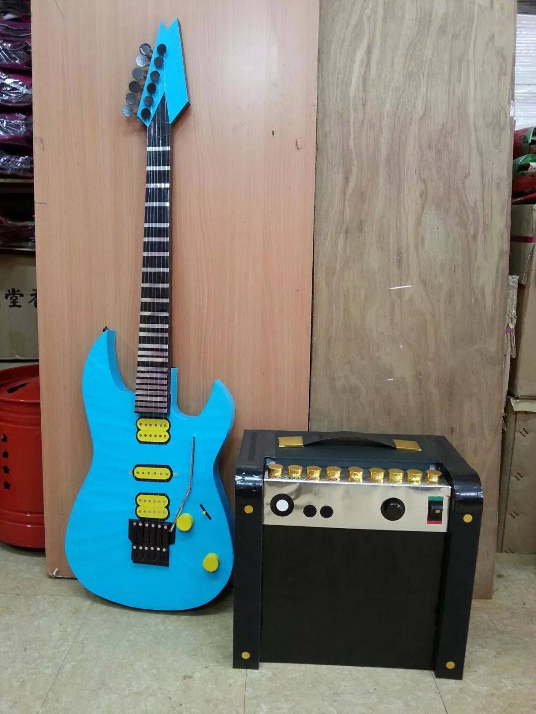 阿志做的“电吉他”和“扩音器”
