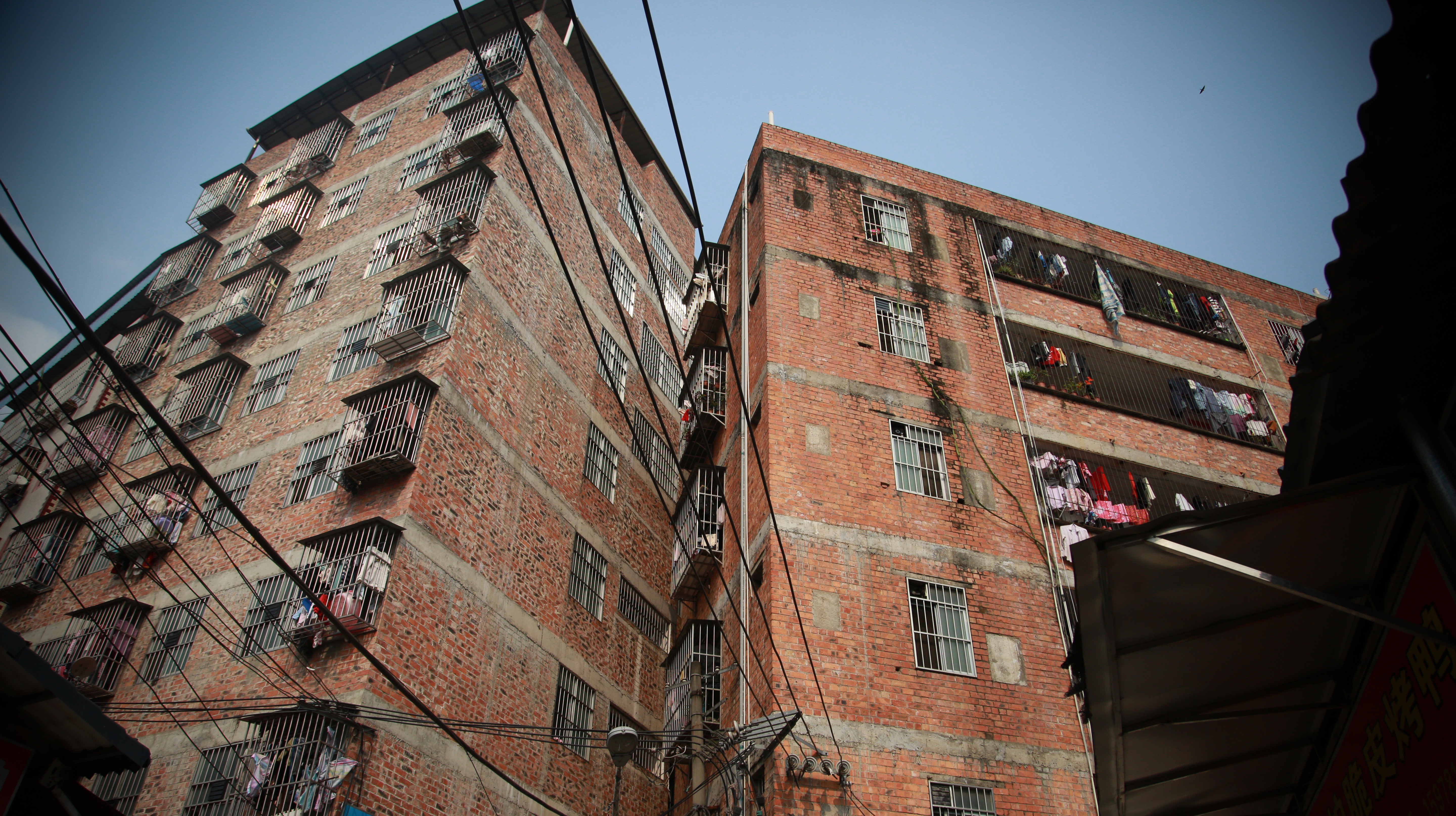 影片以一场情欲戏开头,然后画风一转,航拍机影像中的高楼大厦环绕间,是一片与周围格格不入的城中村,随意在废墟上撑起的晾衣杆,近到可以相连起来的屋顶,逼仄的街道……
