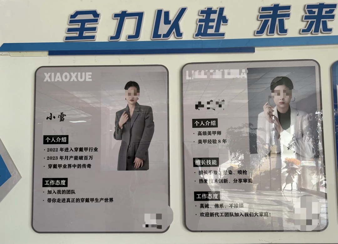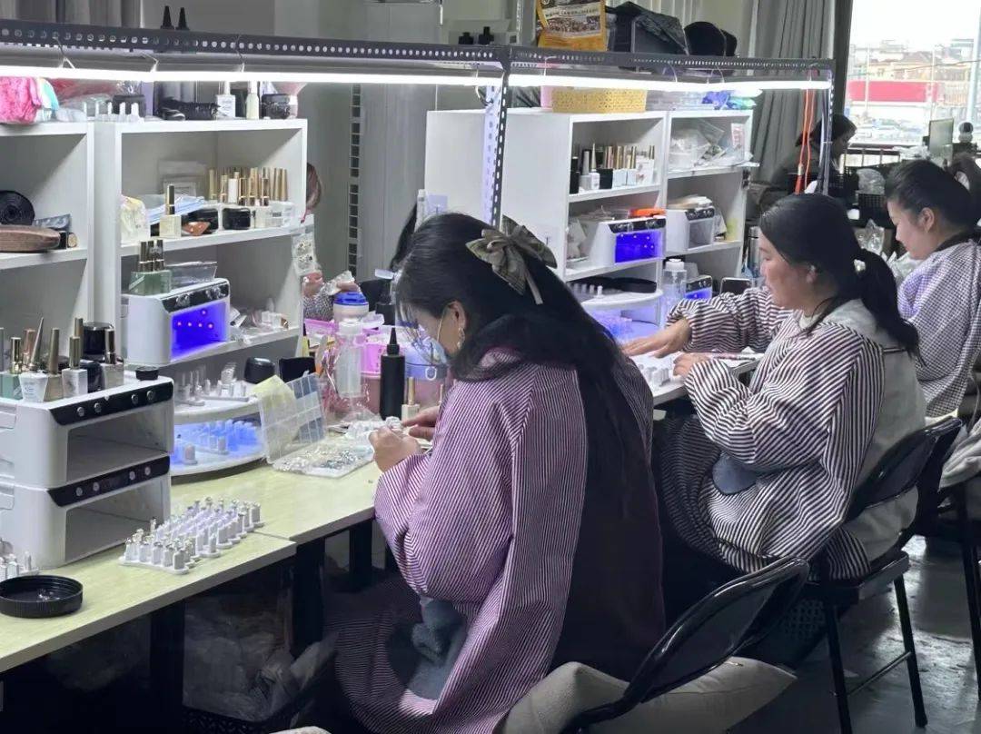△穿戴甲基地里画甲的女性工作人员。(图源:时代周报记者 王晨婷/摄)