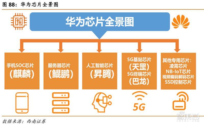 作为中国自主芯片研发的代表企业,华为的芯片开发代表了中国该领域的最高水平,是中国摆脱芯片技术依赖的强大支撑。目前华为自主设计的芯片涵盖手机SoC芯片、AI异构芯片、服务器芯片、5G芯片以及其他专用芯片等领域。