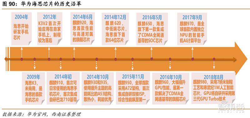 (1)SoC芯片(麒麟系列):手机SoC芯片一直是华为的主力研究,至2018年8月31日推出的麒麟980处理器以及预计今年下半年将推出麒麟985芯片。