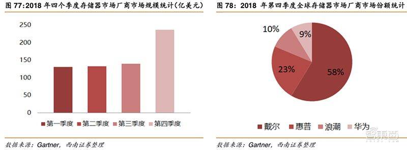 在全球存储器市场中,华为的市场份额占有率位列第四,在2018年第四季度出货量达21.16万台,增长率达27.2%,市场份额达7.1%,仅次于戴尔、惠普、浪潮。