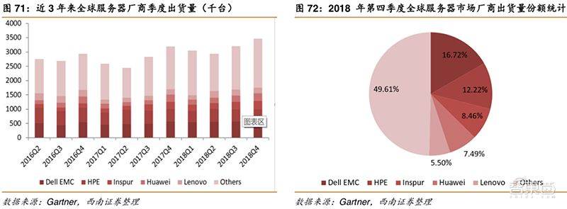 在全球服务器市场中,华为的市场份额占有率为前五位之一,在2018年第四季度出货量达26.02万台,增长率达0.9%,市场份额达7.5%,仅次于戴尔、惠普、浪潮。