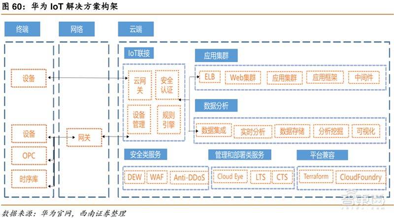 华为IoT解决方案提供两种建设模式:客户基于IoT平台服务、新建IoT联接处理模块的新建模式和基于基础云服务,部署和迁移已有IoT联接处理模块的迁移场景,提供全流程、场景化和高性价的大数据分析架构,同时提供安全、运维、管理类云服务组合,满足客户需求。