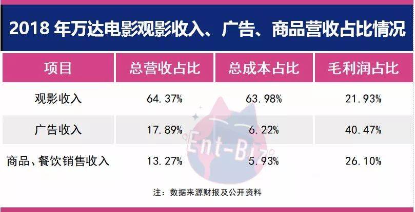 但是从收入结构上,占据80%以上营业成本的观影业务,却只贡献了20%的毛利润。广告在电影院的收入中占据主要位置,以40.47%的毛利率占比位居利润贡献第一,其次是周边、爆米花饮品等的售卖,毛利润贡献率为26.10%。