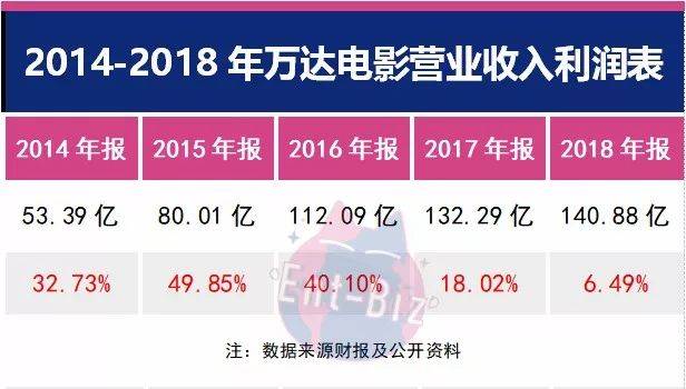 4月25日,万达电影发布2018年财报,年报关键指标数据中,除营业收入140.88亿同比微涨6.49%外,其他关键指标均呈现负增长。营业收入增速大幅下滑,6.49%的增幅比去年同比减缓63.98%,净利润12.95亿,比去年的15.16亿同比减少14.58%。