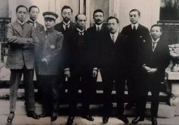 1919年欧洲考察团成员合影,前左二为蒋百里、左三为梁启超。