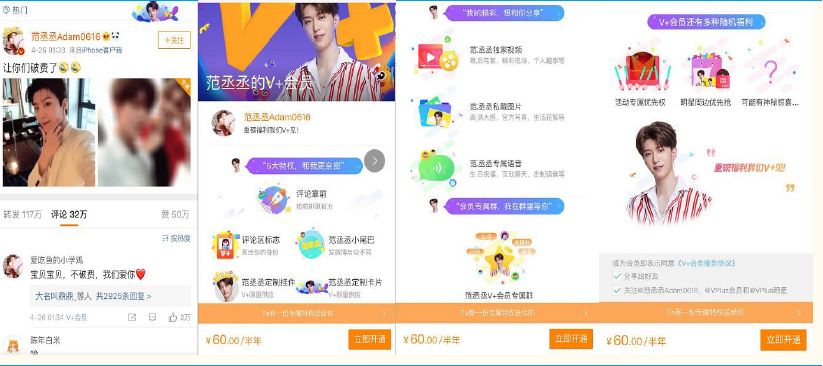 新浪微博出售明星专属V+会员,曾经有一天之内创造几百万销售额的纪录