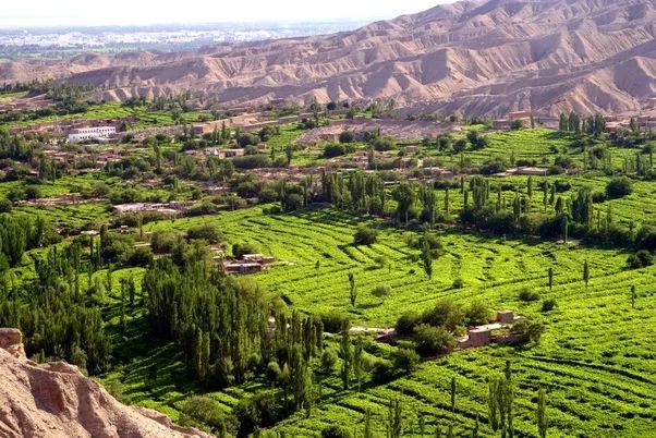 中国这一侧呢,所有荒地都被一支特别的政府组织——新疆生产建设兵团给耕种了。现在新疆生产建设兵团成了一个管辖260万员工和农民的国企,里面有汉族人也有维吾尔族人。因为有了如此庞大的规模,边际运营成本下降,而且跟内地广大市场直接对接。