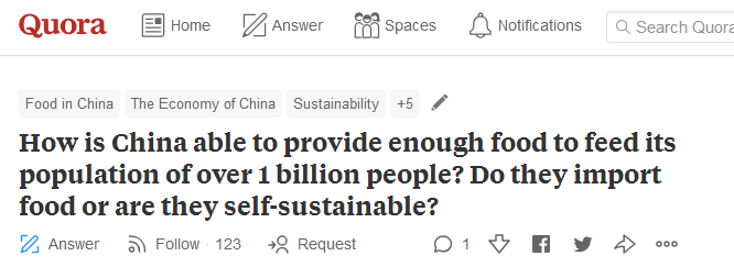今天分享一个我逛Quora看到的帖子。有人问了个问题:中国是怎么生产这么多粮食,足够养活十多亿人的?是靠进口还是自给自足?