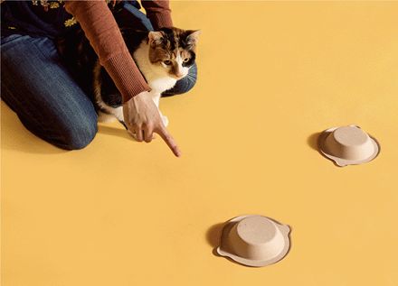 瓦伊塔的猫咪卡尔,在指向测试中,快步走向了瓦伊塔所指的碗,像它的狗对手一样,轻松通过测试。