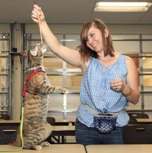▲瓦伊塔会用一根塑料棒吊着一根羽毛把猫领进实验室,她的腰包里装着五种猫零食(图片来源:俄勒冈州立大学官网)