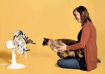 ▲主人用微笑表达的积极情绪让猫咪在面对“风扇怪”时冷静了下来(图片来源:参考资料[1]),拍摄: