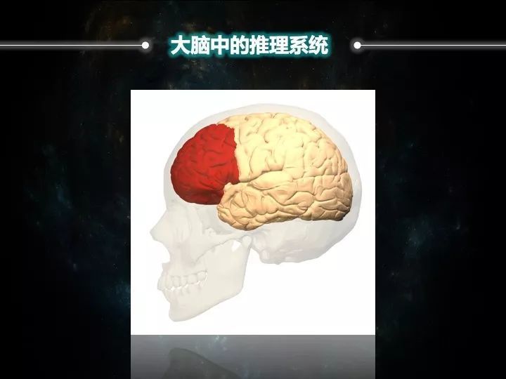 既然评估系统存在这些问题,大脑当中就有另外的解决方案,也就是我这里要说的推理系统。我们平时在做一些更加复杂的问题,比方数学,做证明题,或者规划一下你未来的人生,你不会光靠评估系统,你一定会依赖推理系统。推理系统也是人之所以是人的重要原因。推理系统是大脑当中哪些部分管的呢?还是前额叶。但非常遗憾的是,我们整个神经科学领域对大脑推理系统的了解非常少。主要原因是我们现在的相关实验只能在动物中做。