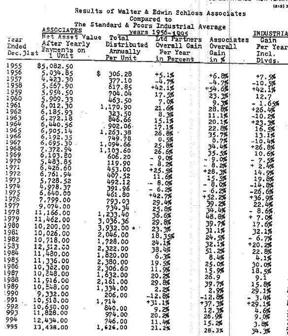 (巴菲特股东信中截止1995年施洛斯投资回报率概要)