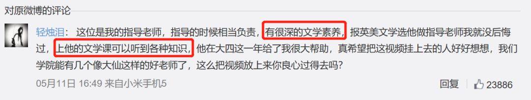 这名老师的学生跳出来说话:老师是一位治学严谨、刀子嘴豆腐心的人,虽然嘴上批评,但最后都会让学生顺利毕业。