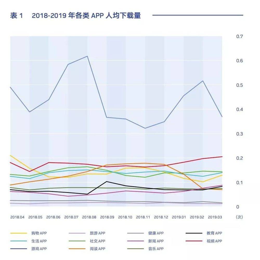 上文我们根据各类别APP在18-19年的人均下载量分为了“四大梯队”,用以展示“增量需求”的变化趋势。第一梯队是遥遥领先的游戏类,第二梯队包括视频、社交、购物、生活、阅读五类。