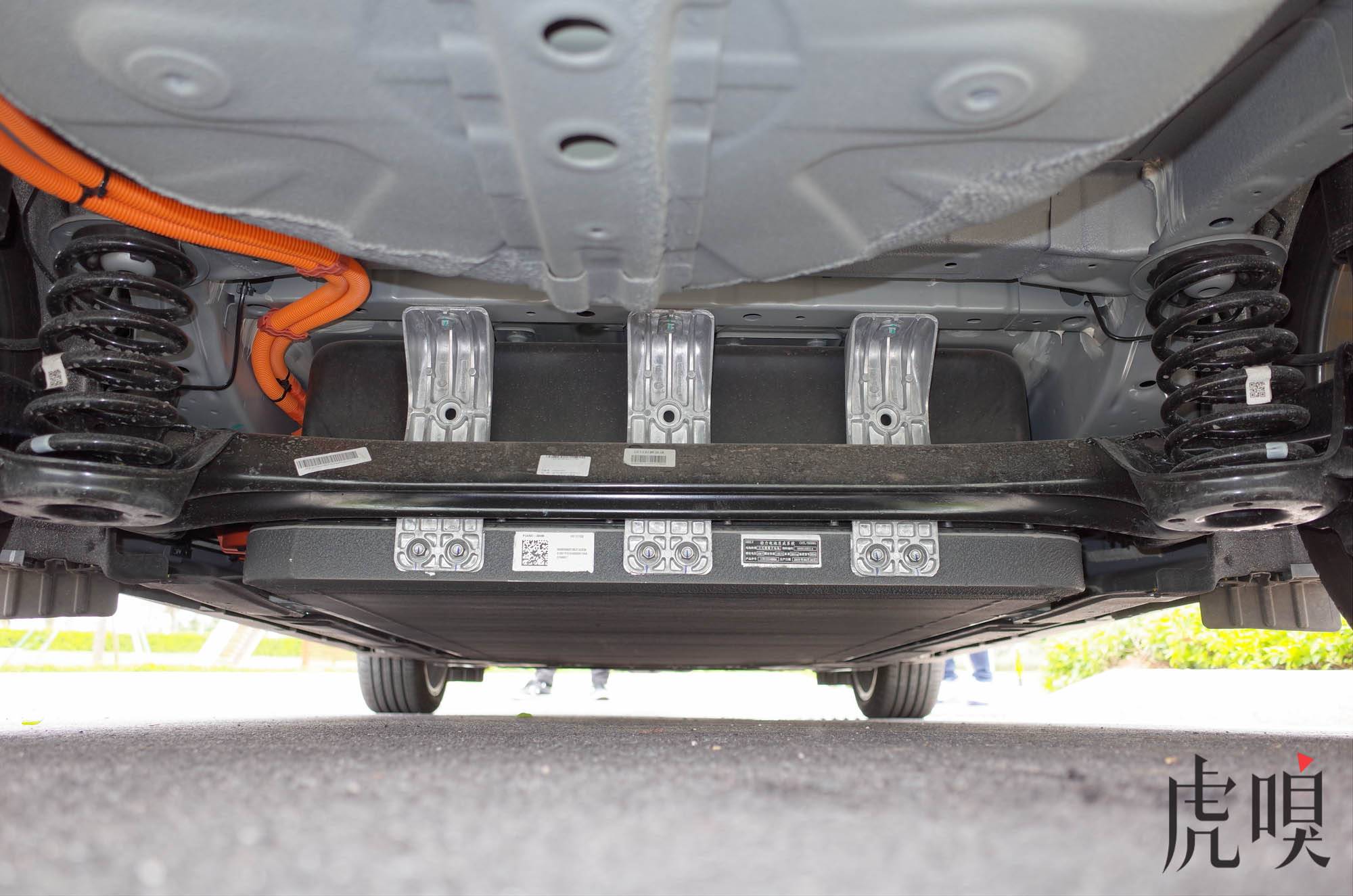 从内到外几何 A 都改头换面,不过这仅限于设计、风格和思维。几何 A 的底层基础,其实和吉利此前的电动车帝豪 EV 系列血脉相通。整车尺寸、体型比例、底盘结构、永磁电机的各项数据,几何 A 都与帝豪 EV450 几乎一致。所以可想而知,它的底盘并不是从一开始即为纯电驱动专门设计。