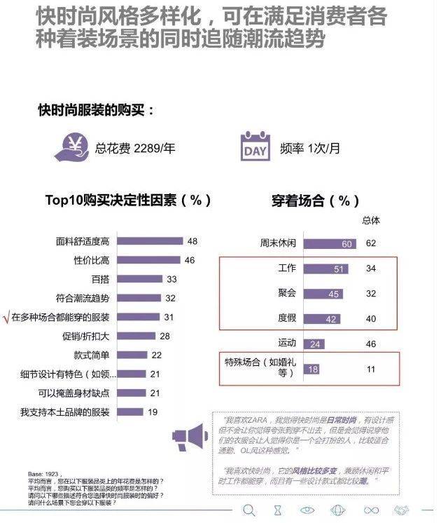 “快时尚”江湖迭代仍在继续,最终谁能称霸武林,结果难以预料。但抓住了消费者偏好,才有可能走得更远。《白皮书》显示,“快时尚”风格多样,可在满足各种着装场景的同时追随潮流趋势是消费者购物时重点考量的因素。