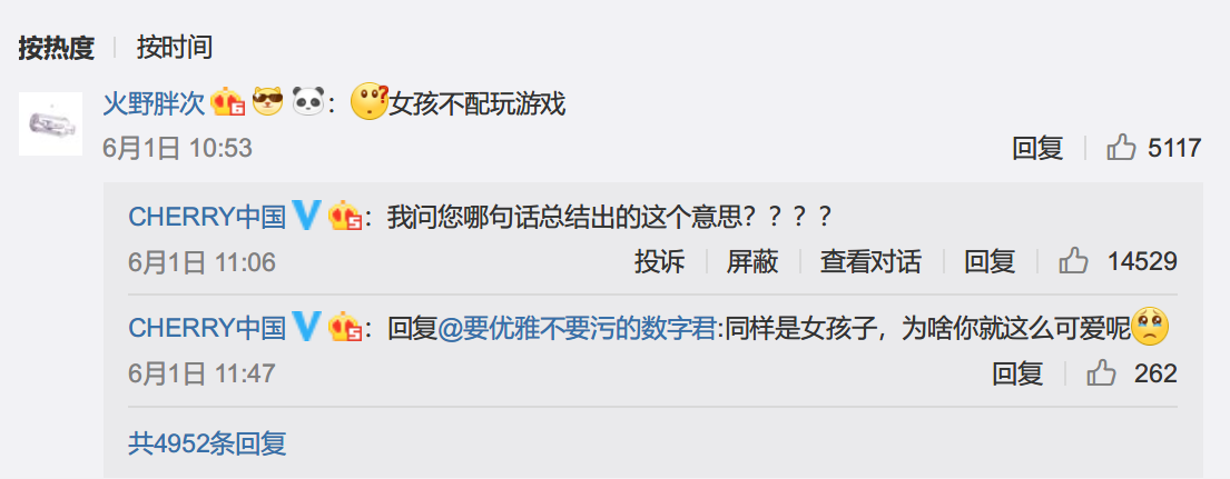 CHERRY 的主要消费群体,确实是男生,这不是性别歧视,而是事实,就像口红的主要消费群体一定是女生一样。但 CHERRY 中国的这波操作,已经把自己放到了所有女性的对立面,甚至引发了部分女性用户的联合抵制(且先不管这样的做法是否理智):