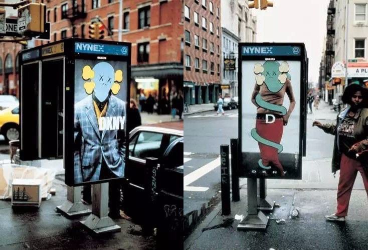 KAWS实际上是一位从街头涂鸦起家的美国潮流艺术家,在中国的知名度原本没有那么高。他热衷于在纽约街头涂鸦巴士站或电话亭的商业广告海报,不同于一般的涂鸦者,KAWS总是在广告海报上加上自己独创的涂鸦图案,恶搞意味十足。