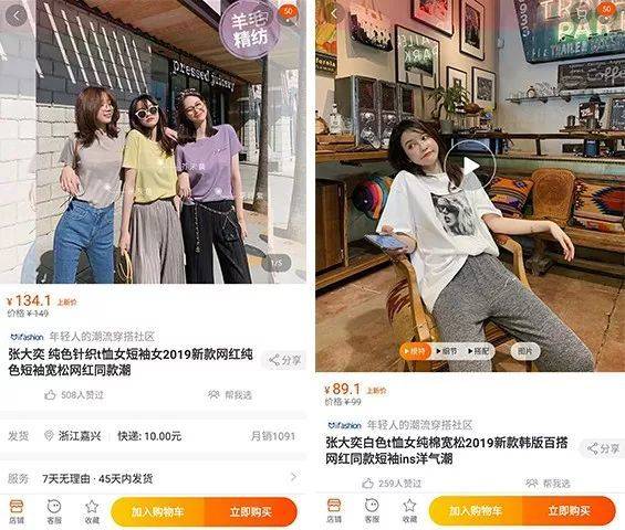 在直播之外,网红带货潮流也长盛不衰。一些网红淘宝店人气惊人,在2014年的“双11”活动中,销量排名前十的女装店铺中网红店铺占到7个。以网红张大奕为例,在2018年的“双11”期间,她的服装店在28分钟内成交额就破亿,问鼎淘宝女装类第一。网红们自己担纲模特,出售打着“XX同款”“XX私物”旗号的服饰和美妆产品,数以万计的粉丝们踊跃购买,模仿着她们的穿衣风格、妆容甚至外貌特征。伴随着一浪高过一浪的消费热情,加之网红嫁明星的消息频频传来,网红脸审美广泛流行开来。