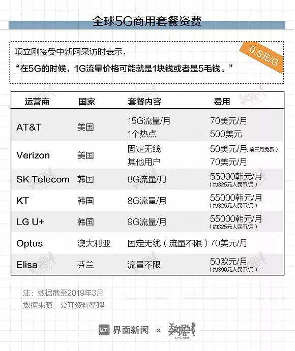5G也很贵。据界面数据不完全统计,现行全球5G商用套餐资费基本都在300元人民币/月以上。