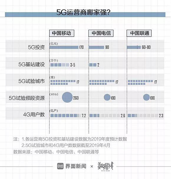 从3G、4G到5G,每一次技术变革必然带来改变行业格局的新机会。抢跑5G正式商用,三大运营商都砸了重金。