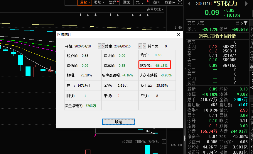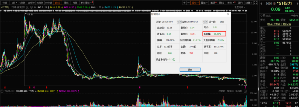 2016年,当*ST保力的净利润达到历史新高时,其股价也达到了历史最高点,市值一度超过135亿元。然而,截至5月14日收盘,该股票的收盘价较历史最高点已下跌超98%。