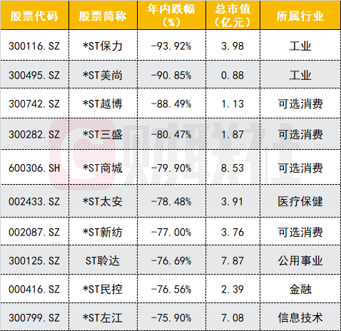 值得注意的是,在众多题材板块中,ST板块今年以来表现最为低迷。在资本市场新“国九条”出台后的首个交易日,A股ST板块出现批量跌停。据统计,截至5月15日,ST板块年内累计下跌38.78%,在Wind热门概念指数中跌幅居首。54只ST股累计下跌超50%,其中*ST越博、*ST美尚、*ST三盛累计跌幅均超80%,三者A股市值均不足2亿元。