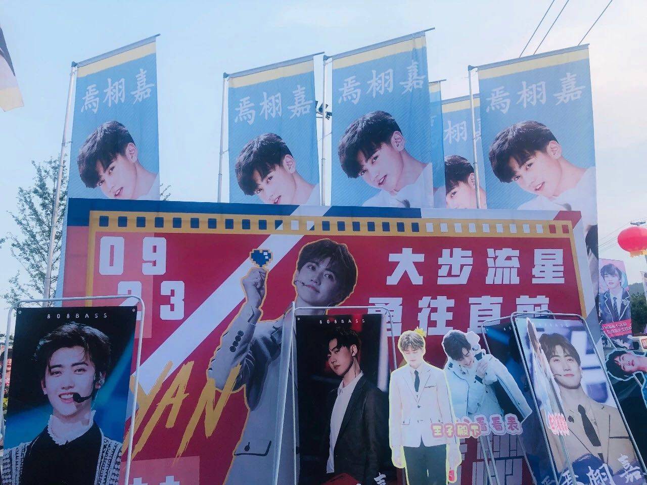 追星女孩们的长枪短炮,爱豆手幅,萌系易拉宝,大型应援花墙,和青岛雨后的清爽暖色融为一体。