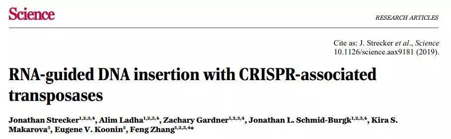 [1] Jonathan Strecker et al., (2019) RNA-guided DNA insertion with CRISPR-associated transposases. Science. DOI: 10.1126/science.aax9181