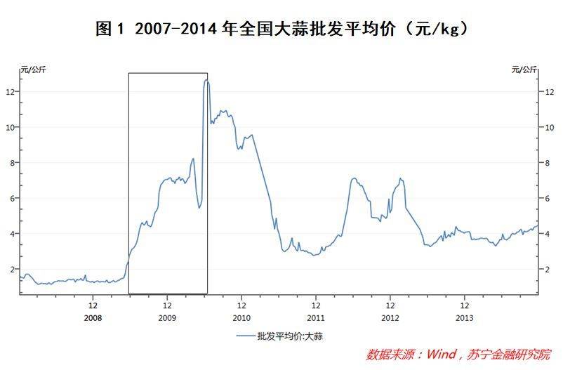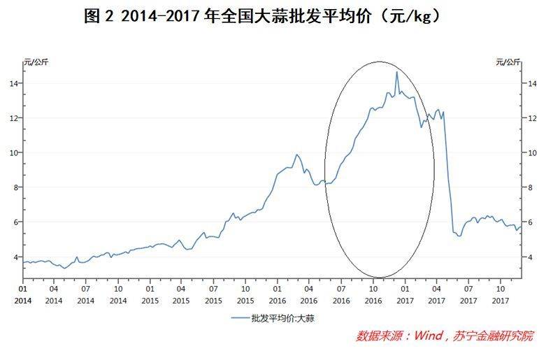 然而,从2014年4月开始,国家出台一系列房地产限购政策,这就迫使大量资金退出楼市,加上当时民间资本普遍缺乏较好的投资路径,门槛与政策风险均较低的农产品就成为了一些游资的炒作目标。此时,叠加市场上关于“大蒜能够预防甲流”的舆论导向,投机分子趁机利用信息不对称来进行炒作,这也多少推升了大蒜的售价。