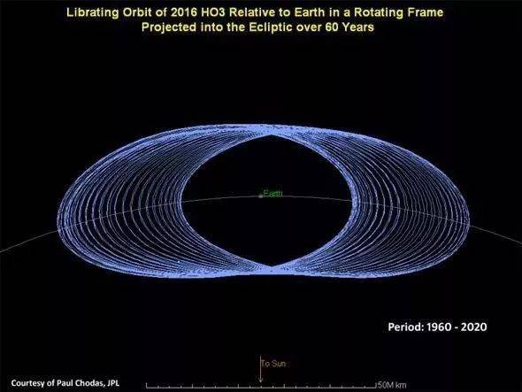 1960~2020年间,2016 HO3相对于地球的位置变化 | JPL