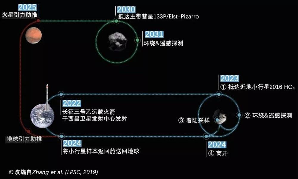 1. 2023年抵达近地小行星2016 HO3,环绕这颗小行星进行一系列近距离遥感探测,并择机采集10克以上的小行星样本;