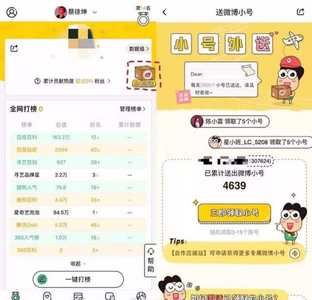 应援App不绝,其上游贩卖小号产业也生生不息。“微博小号的供应商就挺多的,某宝上一搜一大堆。”小椰说。