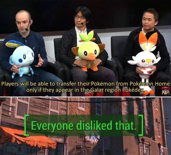 “在新作《剑/盾》中仅使用伽勒尔地区图鉴,任何未在图鉴中出现的宝可梦都无法通过Pokemon Home传输入游戏中。”