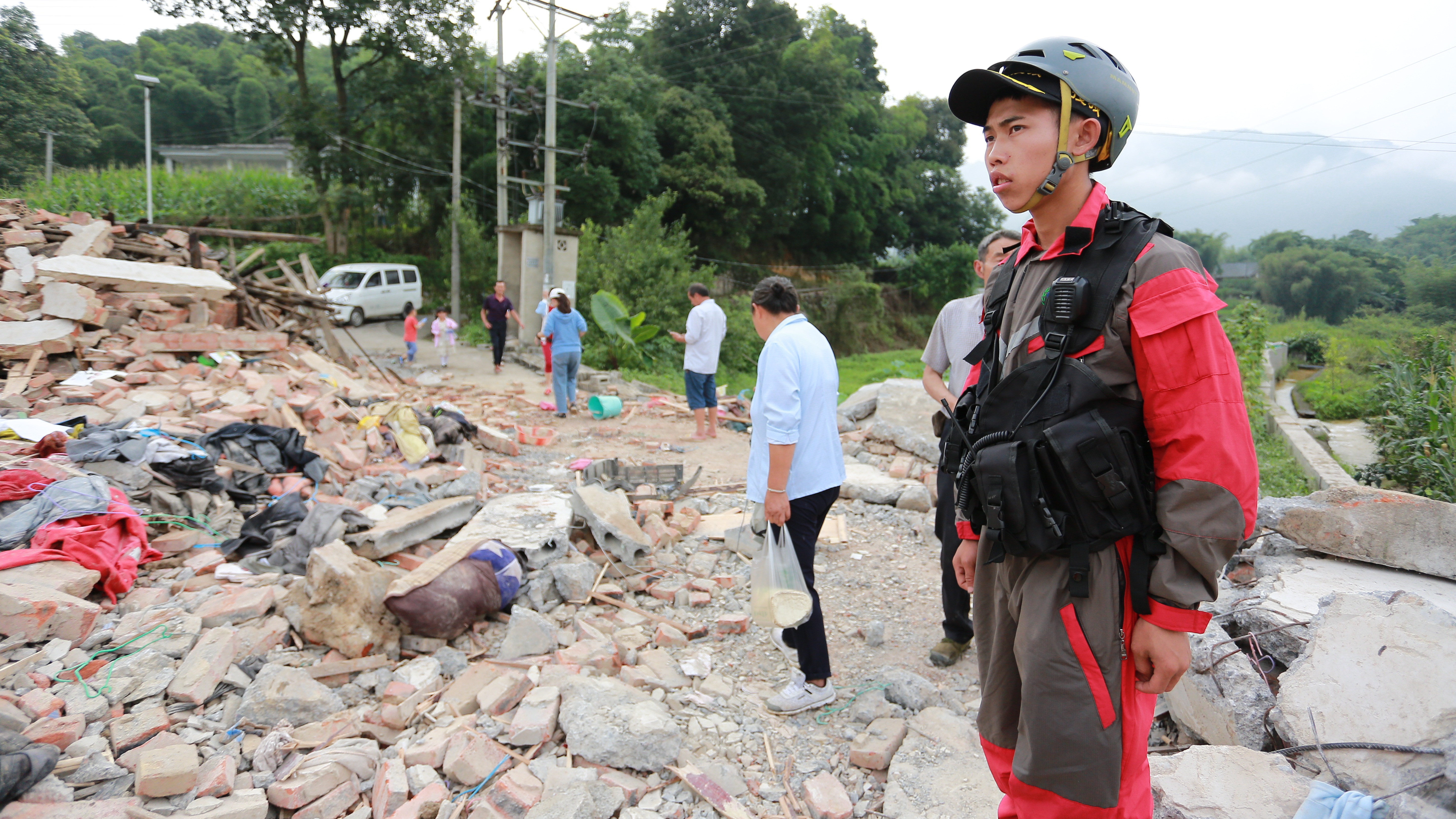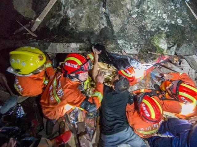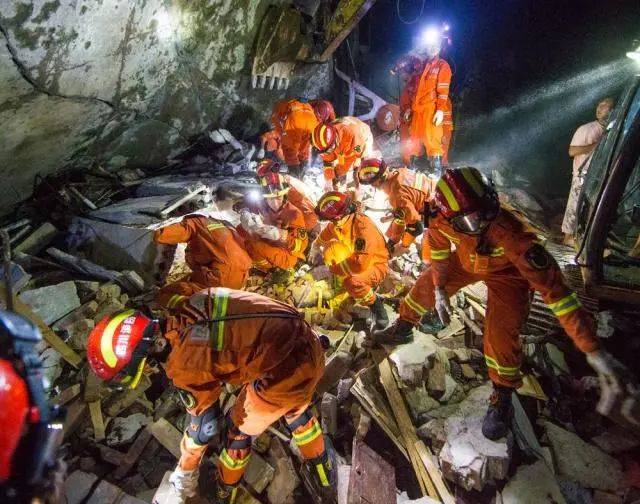 6月18日,在四川省长宁县双河镇,救援人员搜救地震中被困人员。 胡鹏 摄